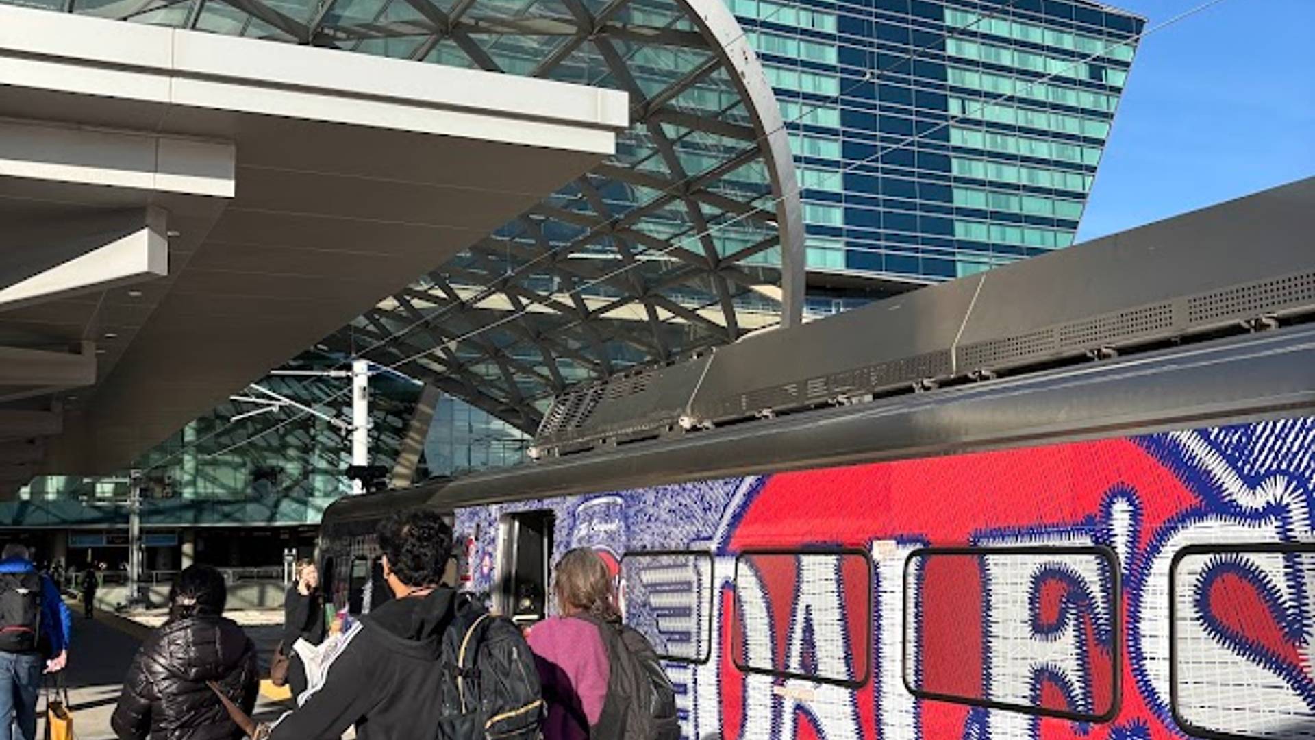Bustang drops you at the lower level of Union Station. From there, it’s just an escalator up and a short walk outside to the train platform. The train arrived within minutes.